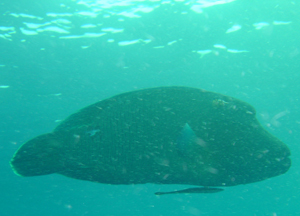 Our daily routine was determined by 3 meals and one or two dives with our rented boat. In the meantime we went snorkelling in the house reef immediately in front of our Resort. As almost everywhere around the island it is an underwater paradise with a variety of corals and fishes. Also this year we were still so fascinated, as 10 years ago when we discovered the "aquarium" of Bunaken. One need not be a diver to explore here the specific world of the coral reef with his countless kinds of coral fish, anemone fish, red fire fish, parrot fish, sweet lips, butterfly fish, boxfish, triggerfish, but also mouraines, bluespotted rays, and Napoleons (picture). With some luck one can watch passing reef sharks, eagle rays, barracudas or gigantic turtles at the reef front, a little more than 100 m from the beach.